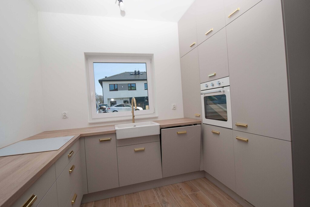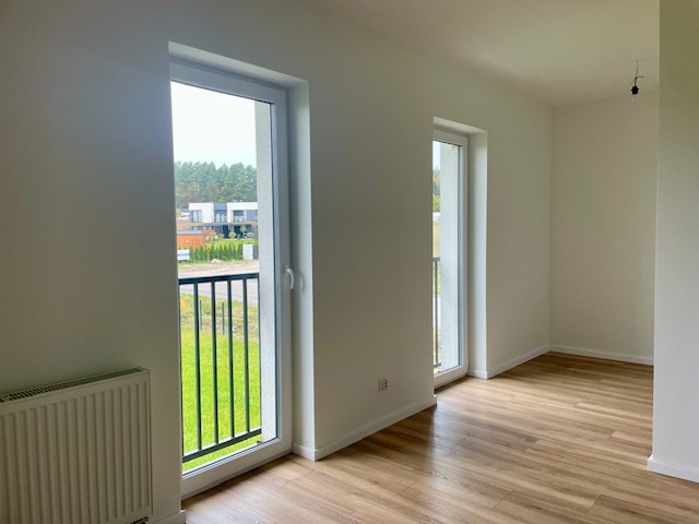 Pokoje na parterze posiadają okna balkonowe z wyjściem na zewnątrz.