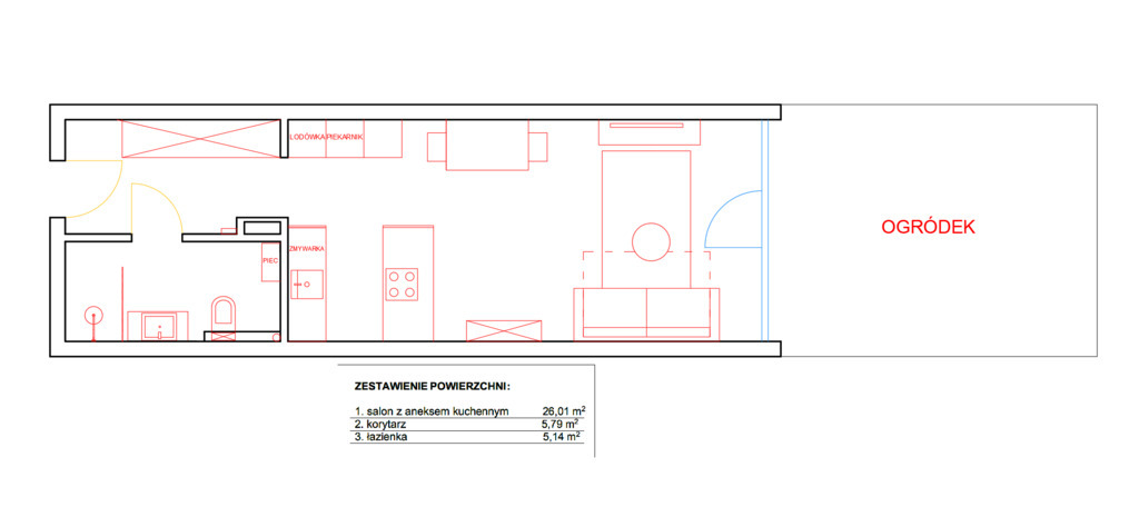 pokój z aneksem kuchennym - pow. 25,07 m2;