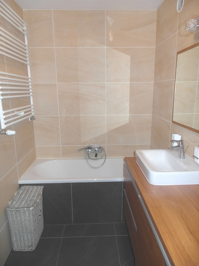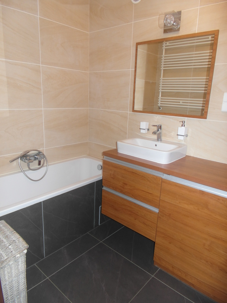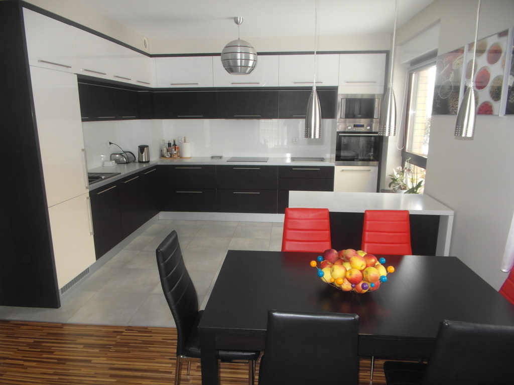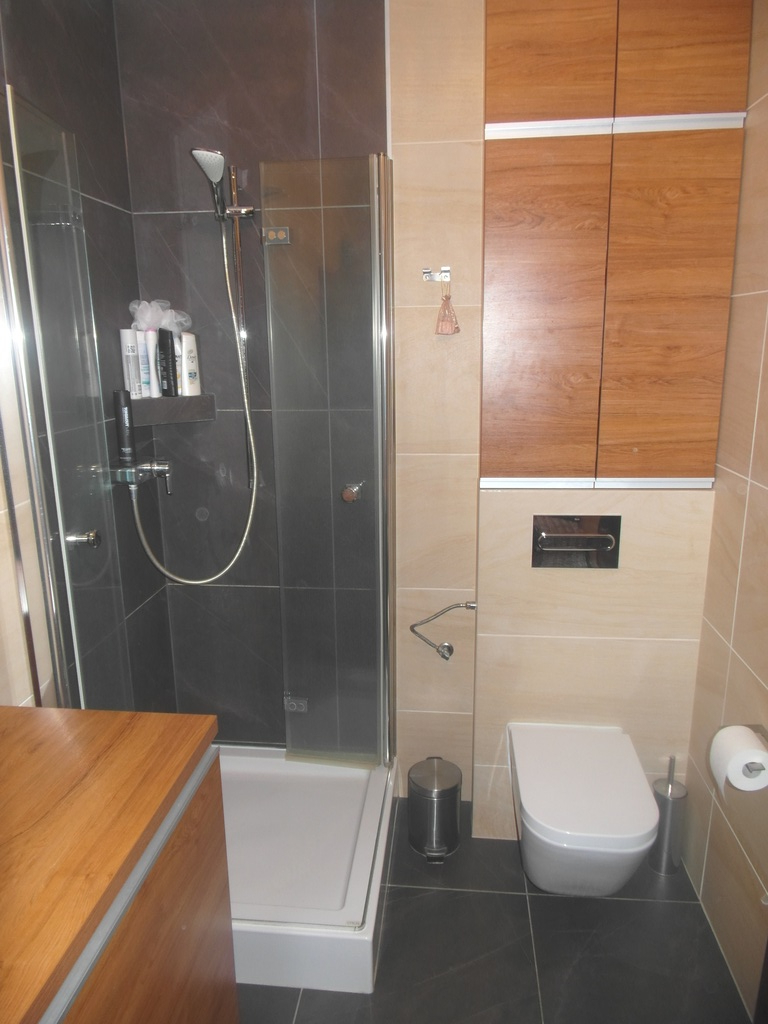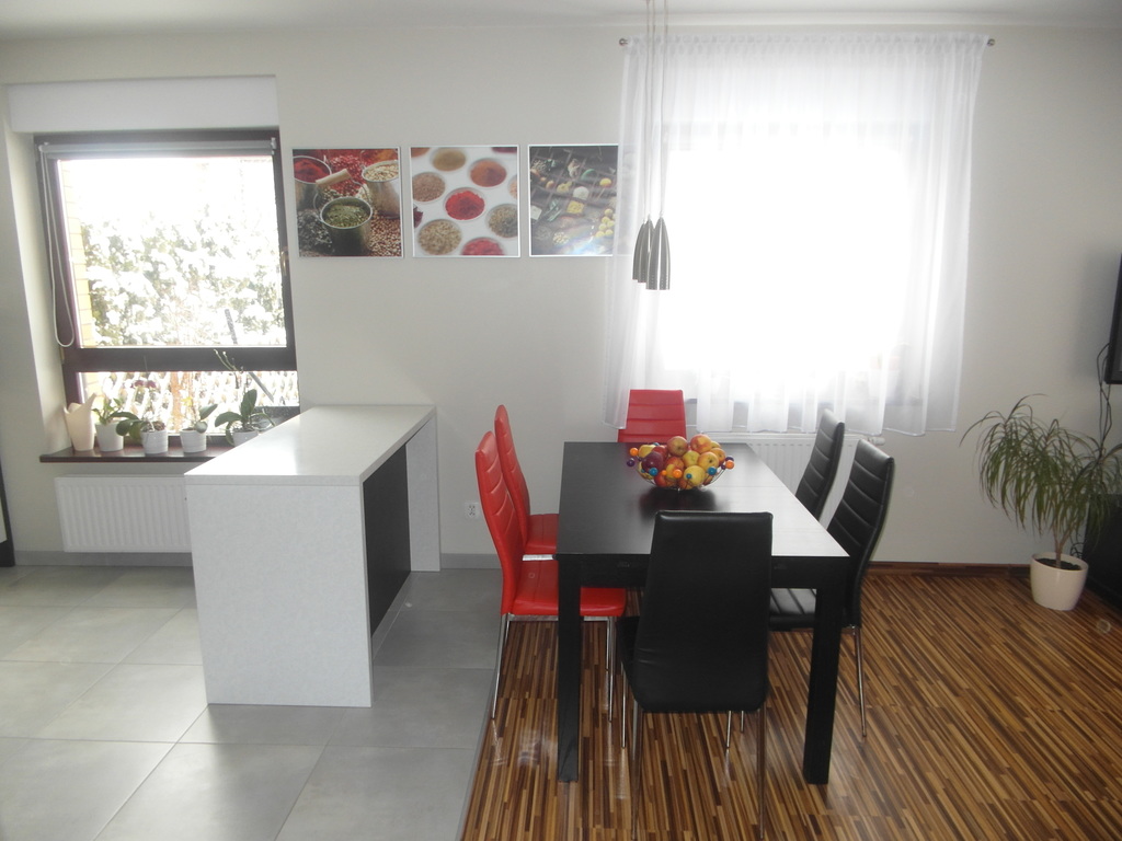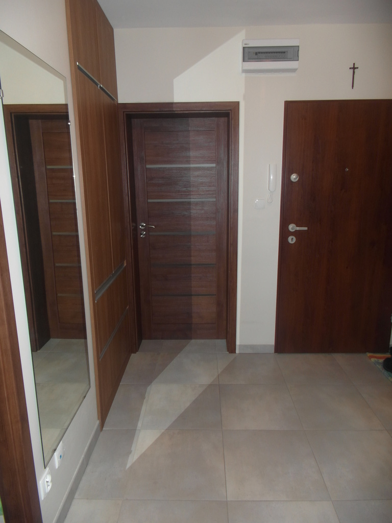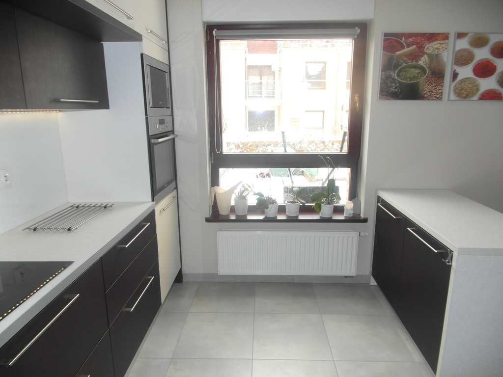 Mieszkanie jest bardzo przestronne, starannie wykończone i dobrze utrzymane. Część z salonem i przedpokojem jest pięknie doświetlona w słoneczny dzień. Na podłogach drewniane, olejowane deski, w kuchni blaty, parapety, płytki wysokiej jakości, granitowe. Łazienka z dużą wanną, wykończona trawertynem romano. W przedpokoju szafa w zabudowie. Kuchnia oddzielna, z wydzieloną strefą jadalnianą, zabudowana meblami na wymiar z ciekawymi rozwiązaniami, jeśli chodzi o przechowywanie. Na wprost zlewozmywaka duże okno przywodzi na myśl amerykańskie filmy. W takiej kuchni świetnie odnajdzie się miłośnik gotowania.