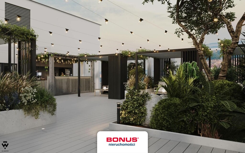 - taras widokowy na 27. piętrze - zdjęcia w ofercie przedstawiają taras po modernizacji.